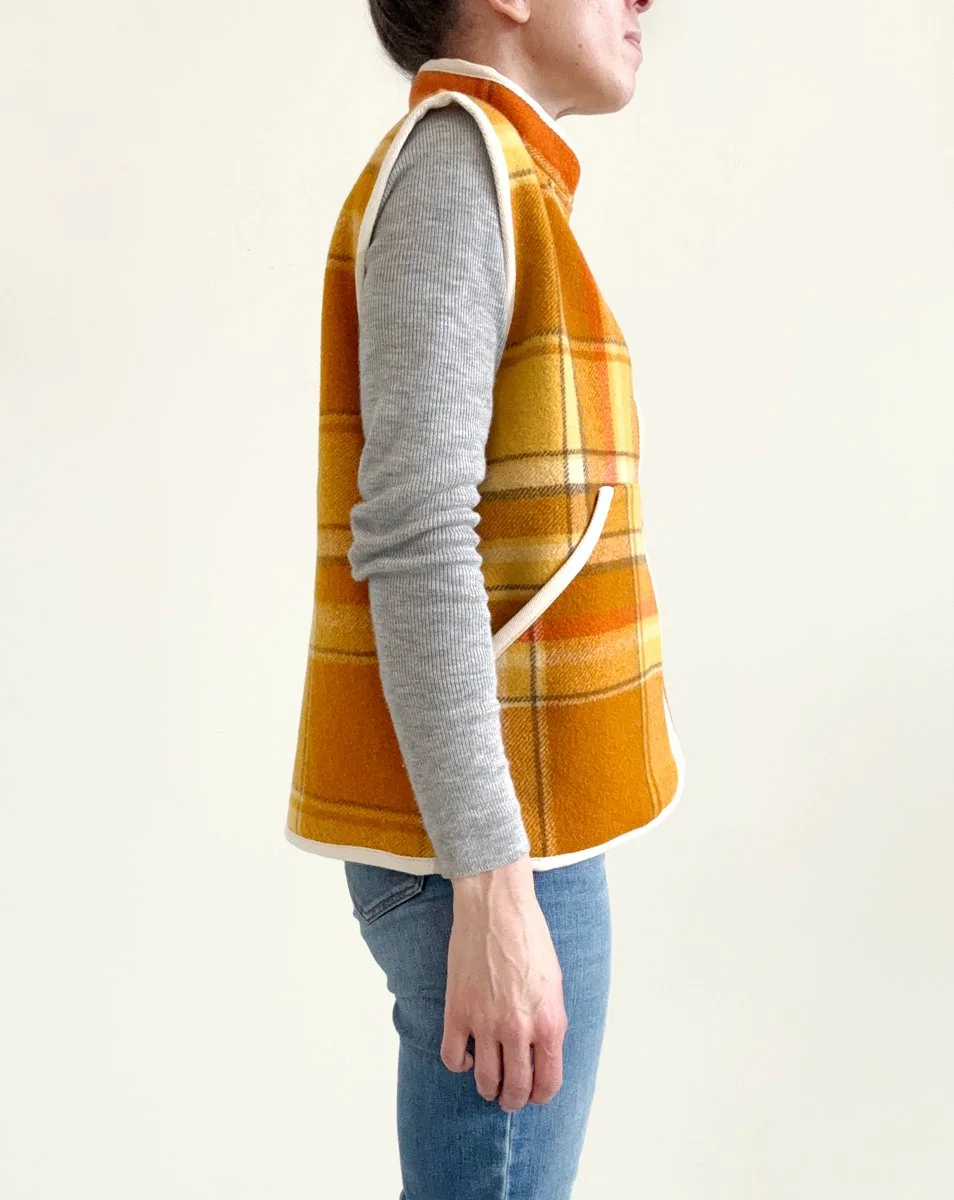This one-of-a-kind, handmade vest is crafted from a vintage blanket, made from 100% pure wool. Perfectly imperfect, the item has been made from a pre-loved, repurposed item.
